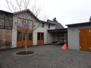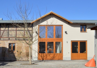 Bei diesem Objekt handelt es sich um einen historischen Bauplatz, der bereits 1866 erwähnt wurde. Ursprünglich als Hof errichtet und später als Bäckerei umgebaut und erweitert, befand sich letztendlich eine Mühlenbaufirma in der Werkstatt. Das straßenseitige Wohn- und Verkaufshaus wurde in den letzten Jahren nicht genutzt. Mit der Sanierung soll die handwerkliche Arbeit fortgeführt werden. Nach den geplanten Arbeiten an dem Werkstattgebäude und den erforderlichen Anpassungen an die heutigen Anforderungen wurde das Wohn-/Verkaufshaus gemäß den historischen Vorlagen saniert.