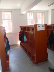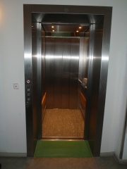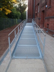 Für den barrierefreien Zugang des Schülerladens der Evangelischen Schule Pankow wurden eine Aufzugsanlage ein- und eine Rampe angebaut.