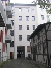 Es wurde ein Panoramaaufzug in Stahlkonstruktion an das hofseitige Treppenhaus des Wohnhauses angebaut. Die Umsetzung war aufgrund der engen Hofsituation sehr anspruchsvoll.