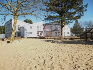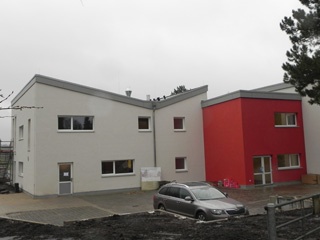 Dies ist der Neubau der Kindertagesstätte „Die Senfkörner“ der Ev.-Luth. Christuskirchengemeinde Pinneberg. Das neue Gebäude bietet auf 2 Etagen Flächen für 3 Krippen-, eine Integrations- sowie 3 Elementargruppen, die den zeitgemäßen pädagogischen Anforderungen entsprechen.