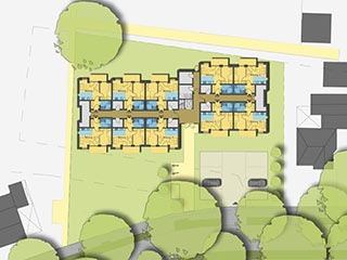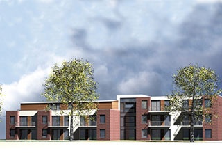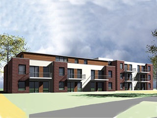 Bei diesem Entwurf handelt es sich um den Neubau einer Anlage für barrierefreie Wohneinheiten für die Christus-Kirchengemeinde Norderstedt. Das Gebäude erstreckt sich parallel zur Straße. Der Riegel wird durch die Fassadengestaltung und den zurückspringenden rechten Gebäudeteil untergliedert. Den Schwerpunkt dieses Entwurfes bildeten die Anforderungen an eine effiziente und kompakte Grundrisslösung für die Nutzung barrierefreies Wohnen.