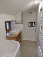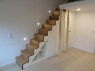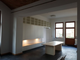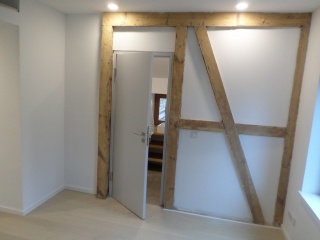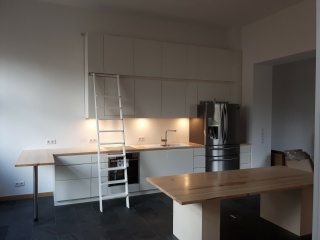 Zwei Wohneinheiten wurden zusammengelegt und neu konzipiert. Das Dachgeschoss wurde ausgebaut, so dass neuer Wohnraum erschlossen wurde. Beim Rückbau vorhandener Installationen wurde eine Kappendecke entdeckt. Nach deren Sanierung trägt sie maßgeblich zu dem großzügigen Raumgefühl bei.