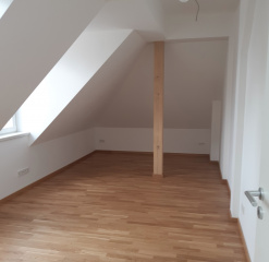 Im Zuge des DG-Ausbaus wurden Hausschwamm und der Befall mit Holzbock festgestellt. Dies hatte eine umfangreiche Sanierung der Deckenbalken und der Sparren ohne die Kompletterneuerung des Dachstuhls (Denkmalbereich) zur Folge.